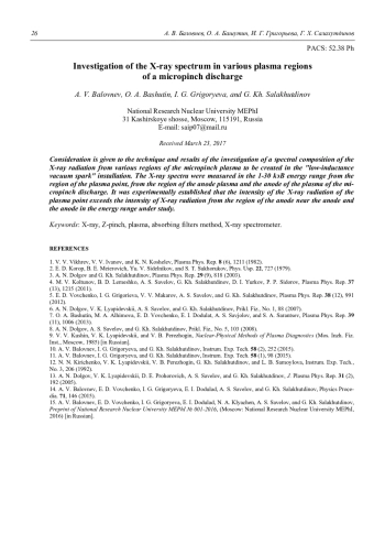 A. V. Balovnev, O. A. Bashutin, I. G. Grigoryeva, and G. Kh. Salakhutdinov Investigation of the X-ray spectrum in various plasma regions of a micropinch discharge 22