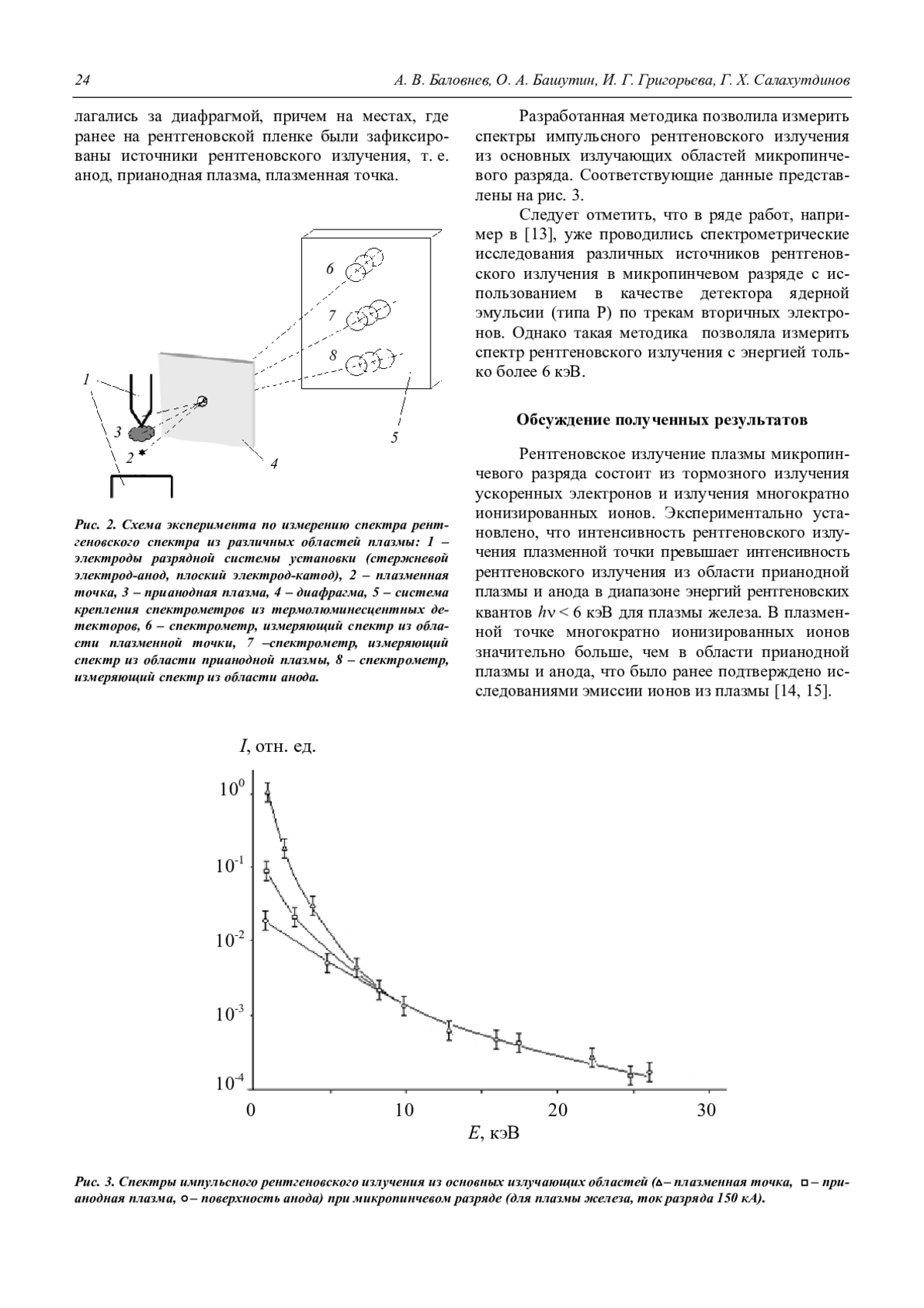 Баловнев А. В., Башутин О. А., Григорьева И. Г., Салахутдинов Г. Х. Исследование спектрального состава рентгеновского излучения из различных областей плазмы микропинчевого разряда 22