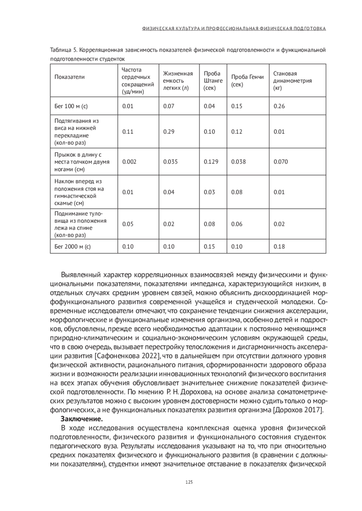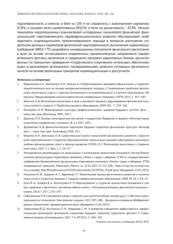 6. Ковалев В. Н., Булгакова О. В. Сравнительный анализ показателей физического развития и физической подготовленности студентов образовательной организации высшего образования различных учебных физкультурных групп в период пандемии COVID-19 // Физическое воспитание и студенческий спорт. 2023. Т. 2. Вып. 1. С. 20-27. EDN: APHXSO