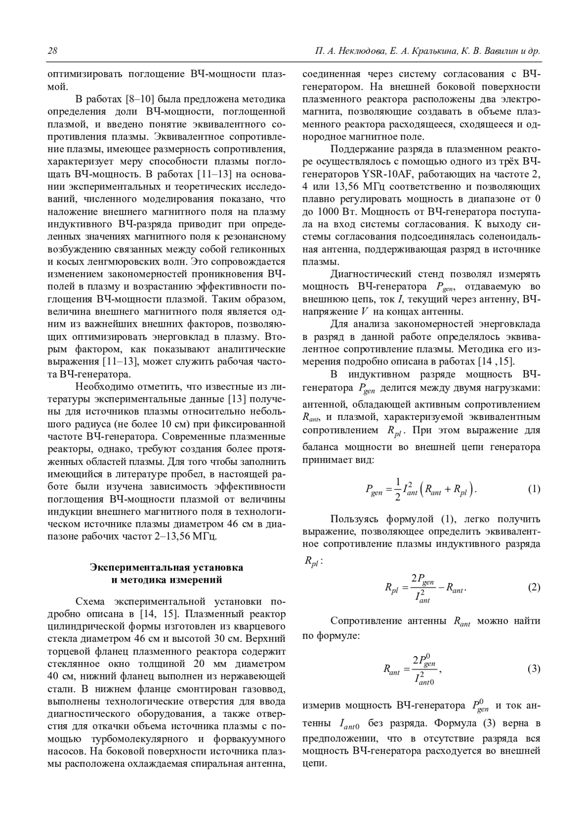 Неклюдова П. А., Кралькина Е. А., Вавилин К. В., Задириев И. И., Никонов А. М. Влияние внешнего магнитного поля на эффективность поглощения высокочастотной мощности в пространственно ограниченном индуктивном источнике плазмы 27