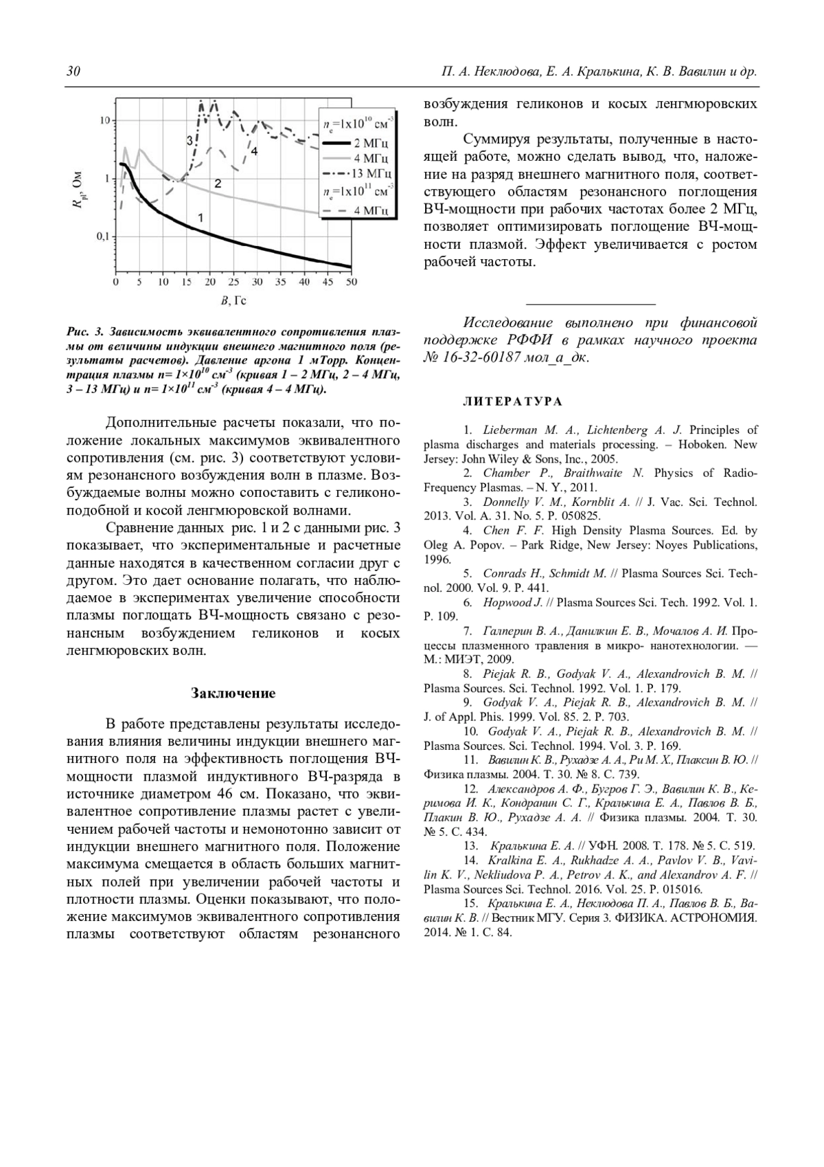 15. E. A. Kralkina, P. A. Nekliudova, V. B. Pavlov, K. V. Vavilin, Moscow Univ. Phys. Bull. 69 (1), 92 (2014).