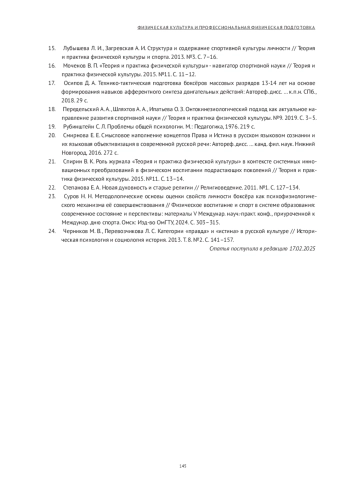 15. Лубышева Л. И., Загревская А. И. Структура и содержание спортивной культуры личности // Теория и практика физической культуры и спорта. 2013. №3. С. 7-16.