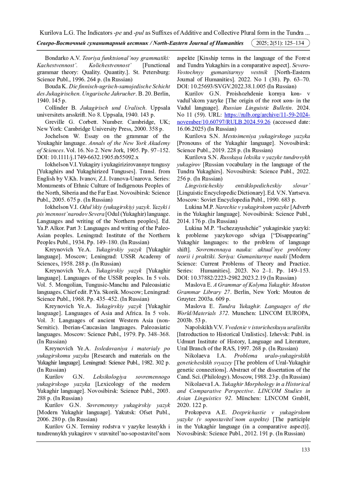 35. Nikolaeva I.A. Yukaghir Morphology in a Historical and Comparative Perspective. LINCOM Studies in Asian Linguistics 92. München: LINCOM GmbH, 2020. 122 p.