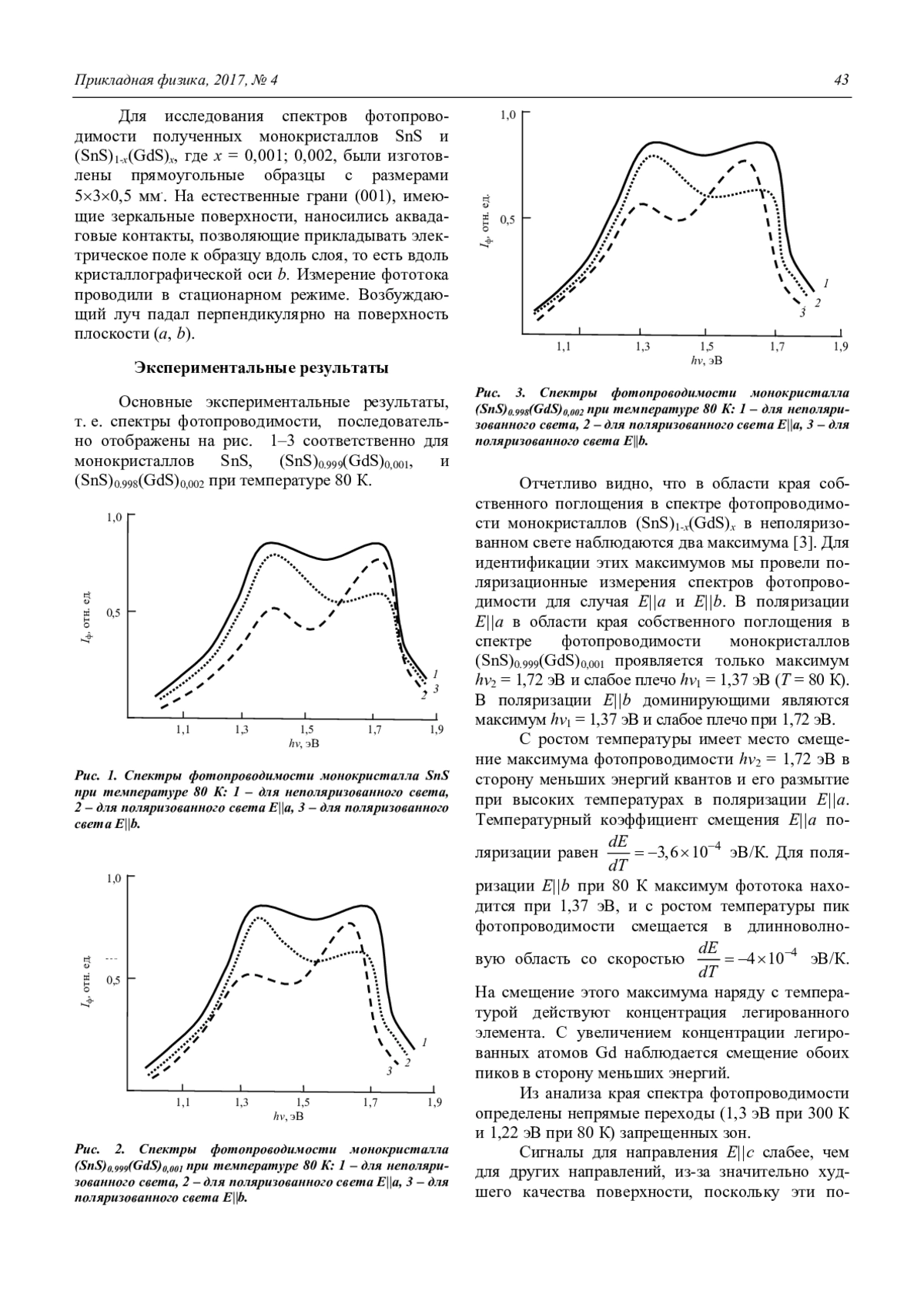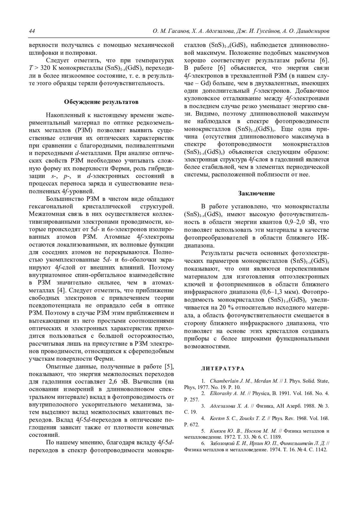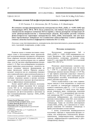 Гасанов О. М., Адгезалова Х. А., Гусейнов Дж. И., Дашдемиров А. О. Влияние атомов Gd на фоточувствительность монокристалла SnS 42