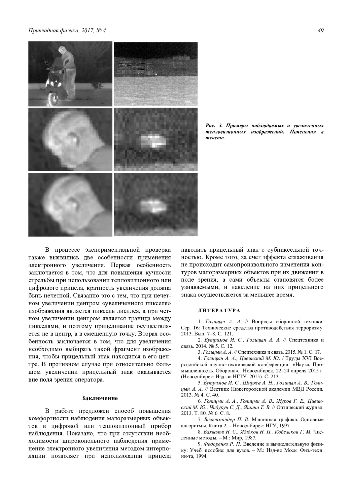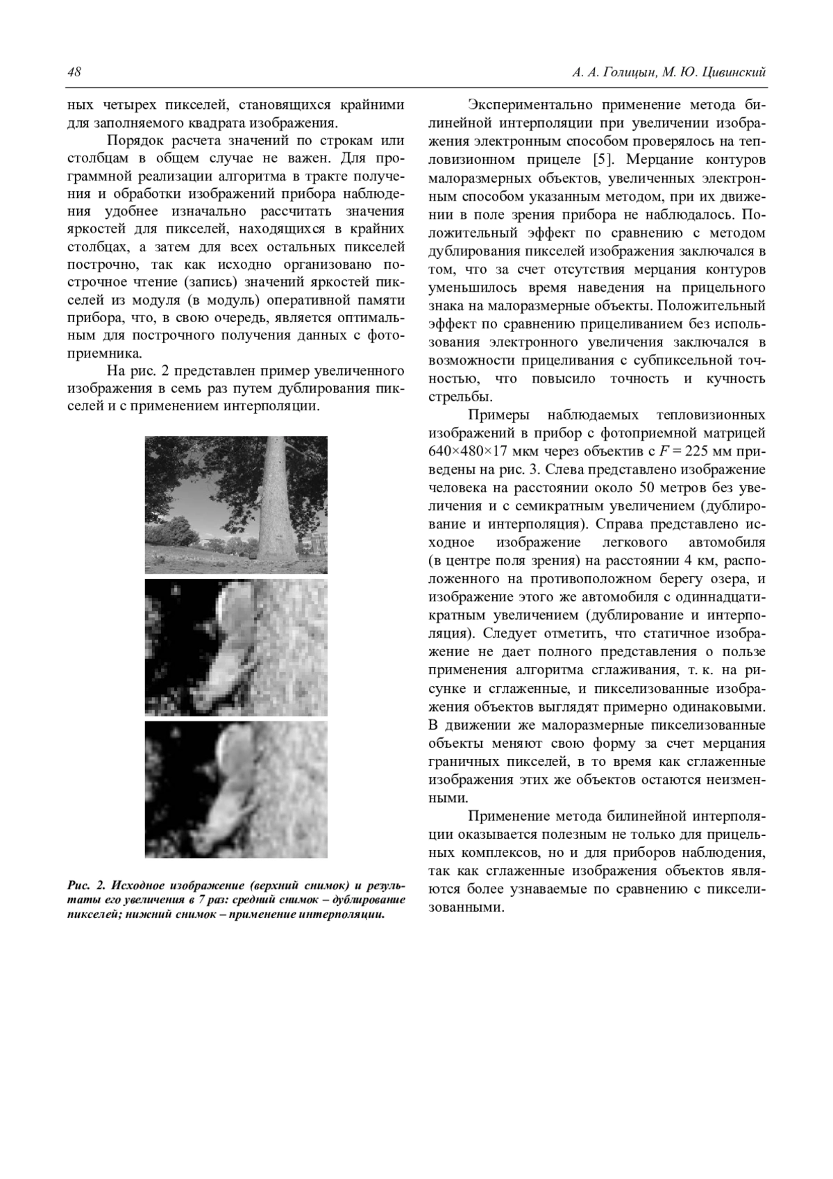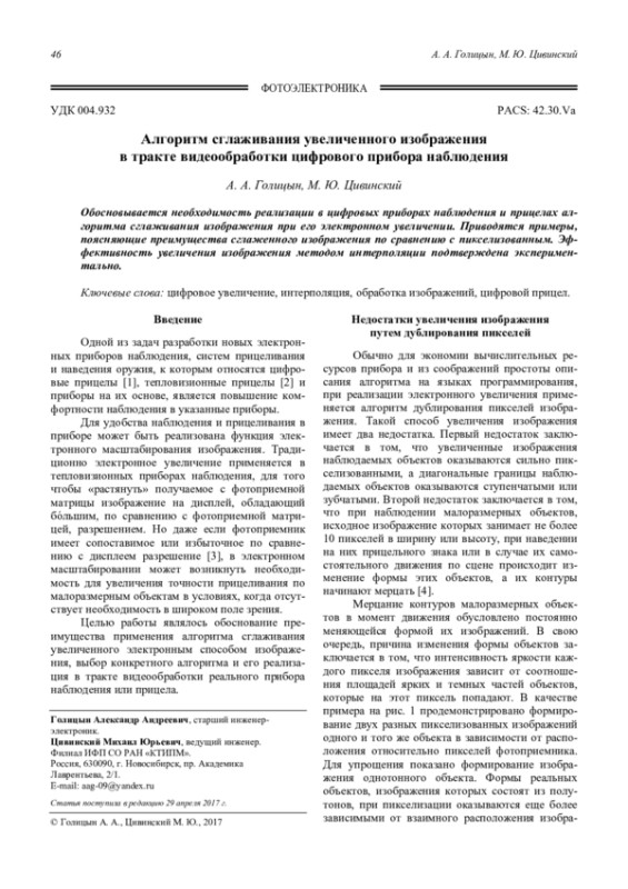 Голицын А. А., Цивинский М. Ю. Алгоритм сглаживания увеличенного изображения в тракте видеообработки цифрового прибора наблюдения 46