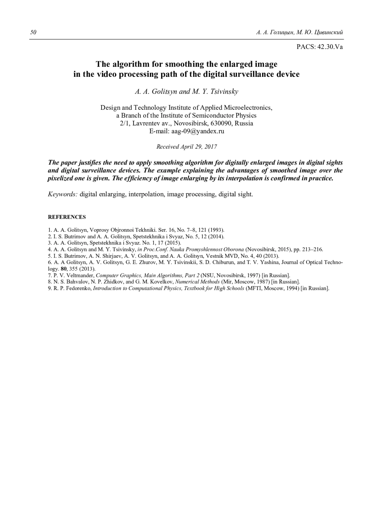 A. A. Golitsyn and M. Y. Tsivinsky The algorithm for smoothing the enlarged image in the video processing path of the digital surveil-lance device 46