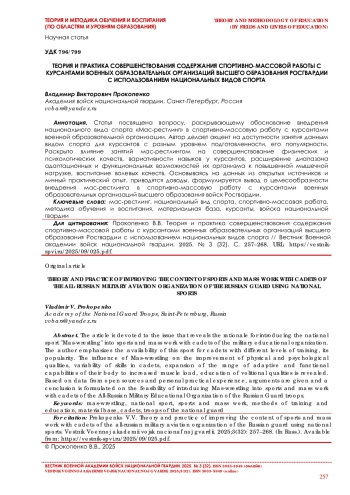 Prokopenko V. V. Special’naya professional’no-prikladnaya fizicheskaya podgotovka kursantov voennyh obrazovatel’nyh organizacij vysshego obrazovaniya vojsk nacional’noj gvardii: monografiya. SPb.: SPVI vojsk nacional’noj gvardii, 2021. 227 s. (In Russ.).