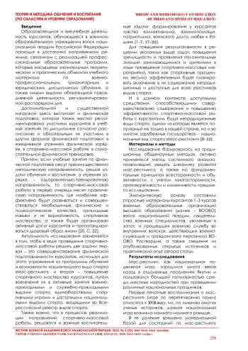 Статья посвящена вопросу, раскрывающему обоснование внедрения национального вида спорта «Мас-рестлинг» в спортивно-массовую работу с курсантами военной образовательной организации. Автор делает акцент на доступности занятия данным видом спорта для курсантов с разным уровнем подготовленности, его популярности. Раскрыто влияние занятий мас-рестлингом на совершенствование физических и психологических качеств, вариативности навыков у курсантов, расширение диапазона адаптационных и функциональных возможностей их организма к повышенной мышечной нагрузке, воспитание волевых качеств. Основываясь на данных из открытых источников и личный практический опыт, приводятся доводы, формулируется вывод о целесообразности внедрения мас-рестлинга в спортивно-массовую работу с курсантами военных образовательных организаций высшего образования войск Росгвардии.