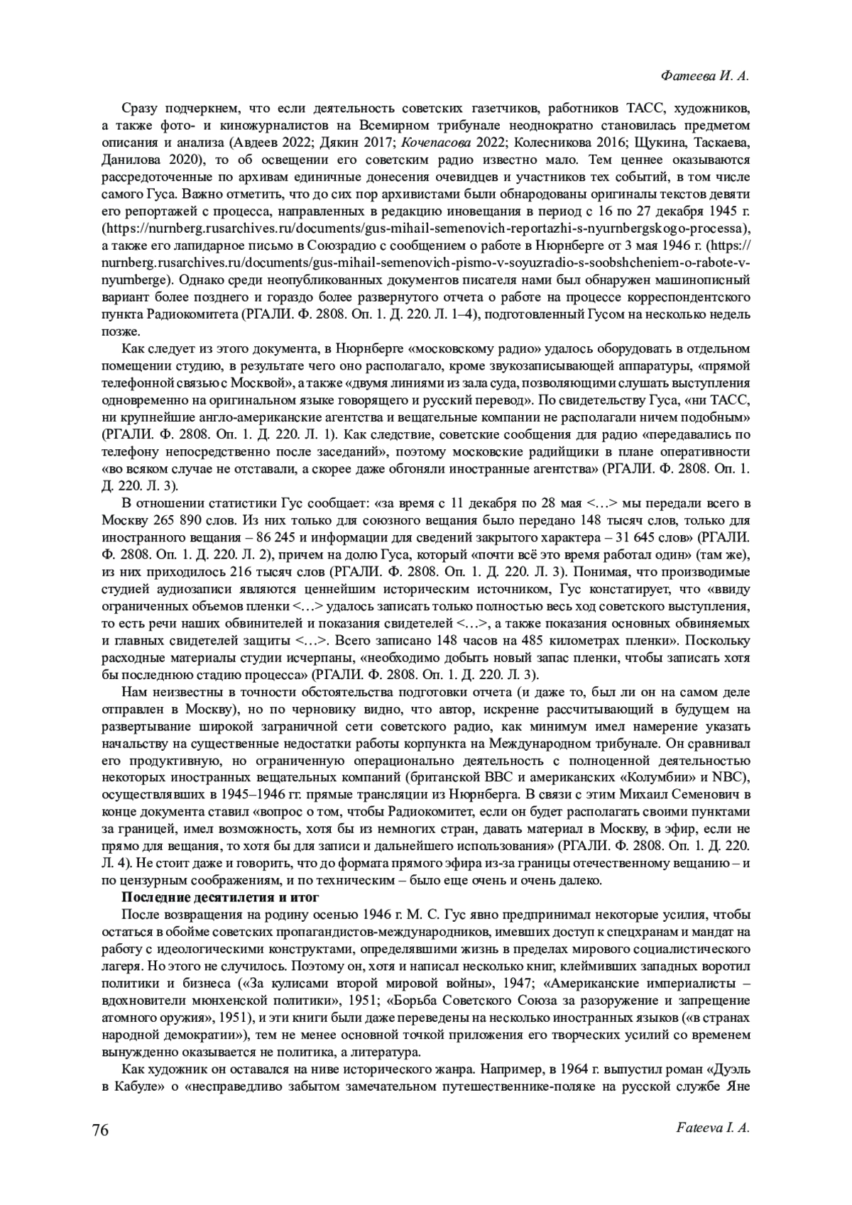 11. Фатеева И. А. Наука о журналистике на попечении отраслевого профсоюза: ретроспективный взгляд // Вестник Томского государственного университета. Филология. 2022. № 3 (77). C. 250-262. DOI: 10.17223/19986645/77/13 EDN: OXZEZT