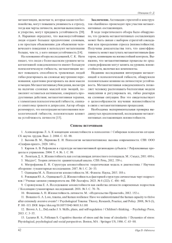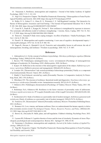 14. Narayanan A. Resilience, metacognition and complexity // Journal of the Indian Academy of Applied Psychology. 2009. Т. 35. С. 112-118.