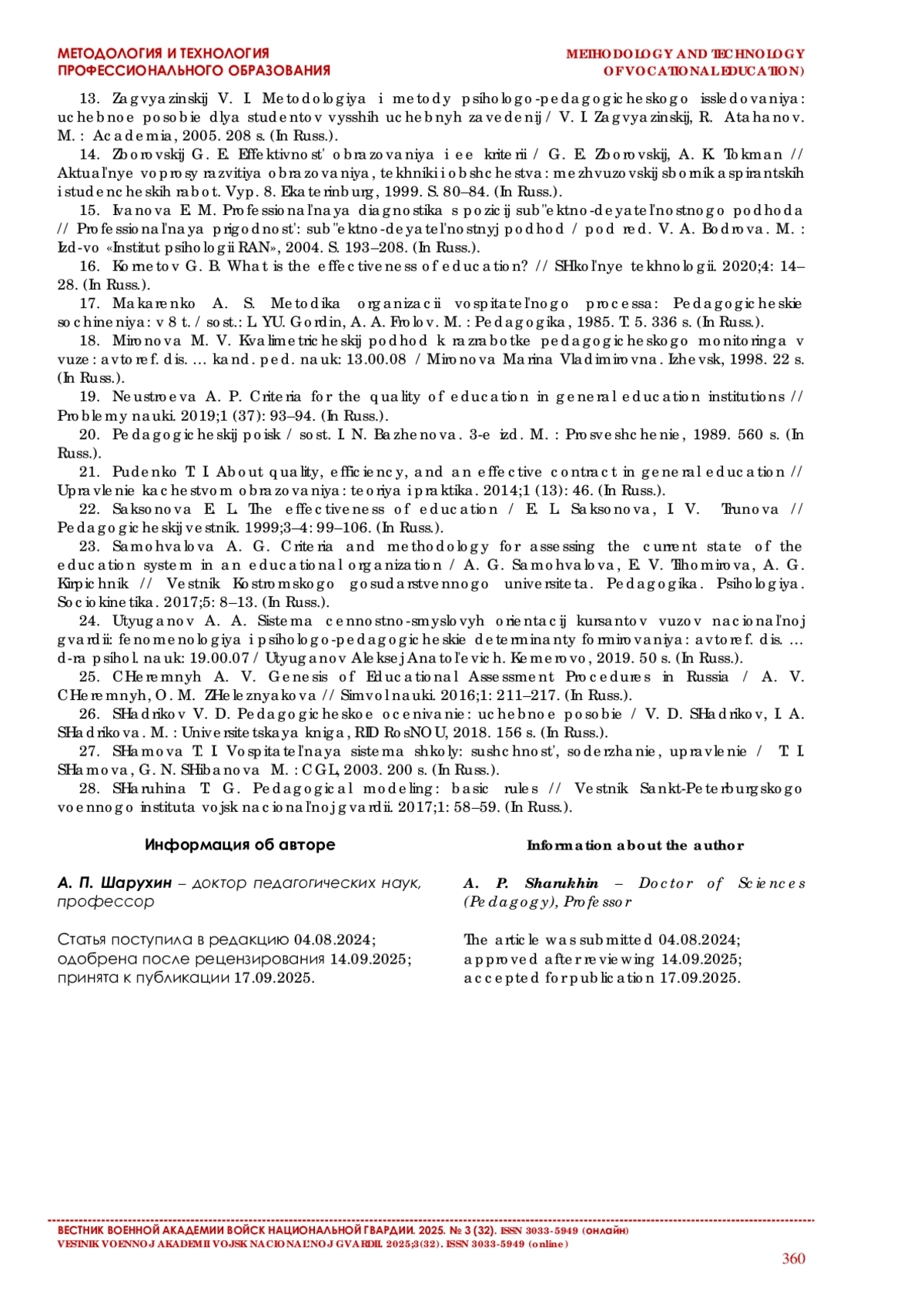 28. Шарухина Т. Г. Педагогическое моделирование: основные правила // Вестник Санкт-Петербургского военного института войск национальной гвардии. 2017. № 1. С. 58-59. EDN: YVDMRT