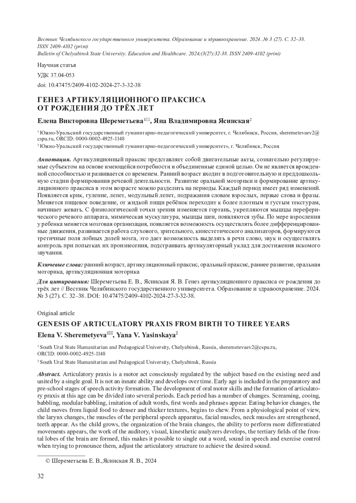14. Шереметьева Е. В. От рождения до первой фразы: тернистый путь к общению: монография. Челябинск: Юж.-Урал. гос. гуманитар.-пед. ун-т, 2019. 282 с. EDN: FYAPFC