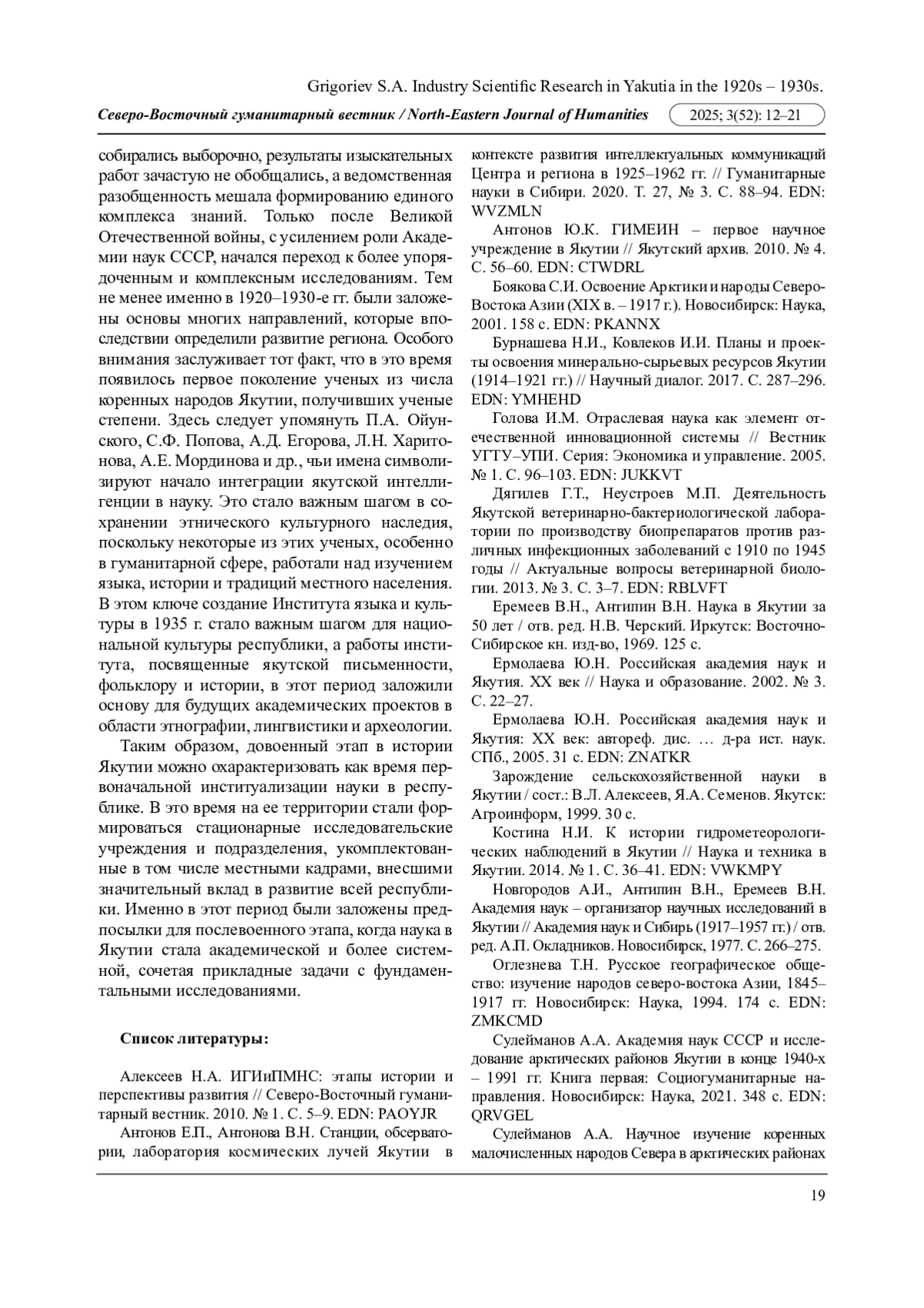 13. Новгородов А.И., Антипин В.Н., Еремеев В.Н. Академия наук - организатор научных исследований в Якутии // Академия наук и Сибирь (1917-1957 гг.) / отв. ред. А.П. Окладников. Новосибирск, 1977. С. 266-275.