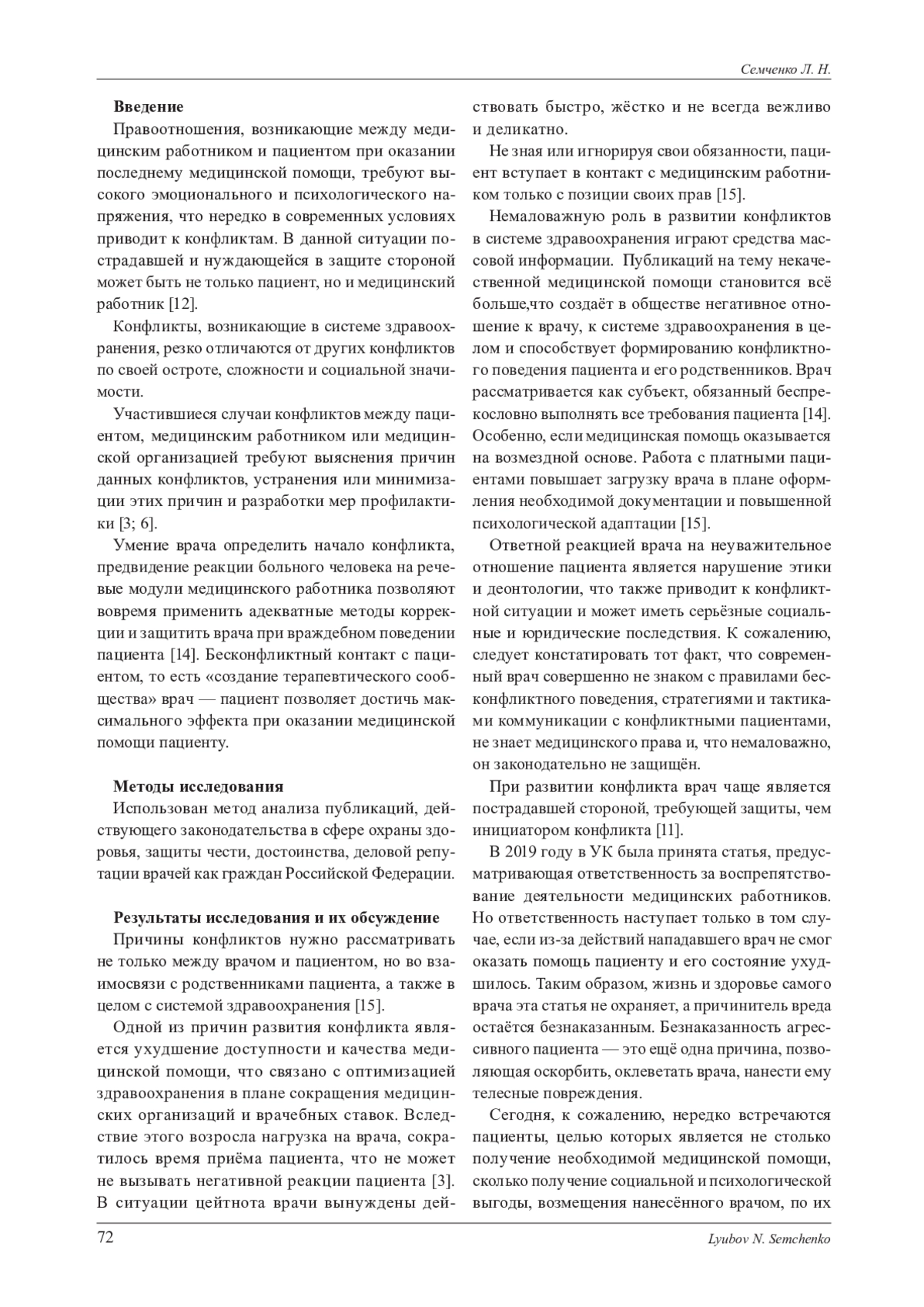 14. Хабулаева Г. Г. Феномен конфликта между пациентом и врачом // Этносоциум и межнациональная культура. 2015. № 12 (90). С. 51-57. EDN: VRIBWP