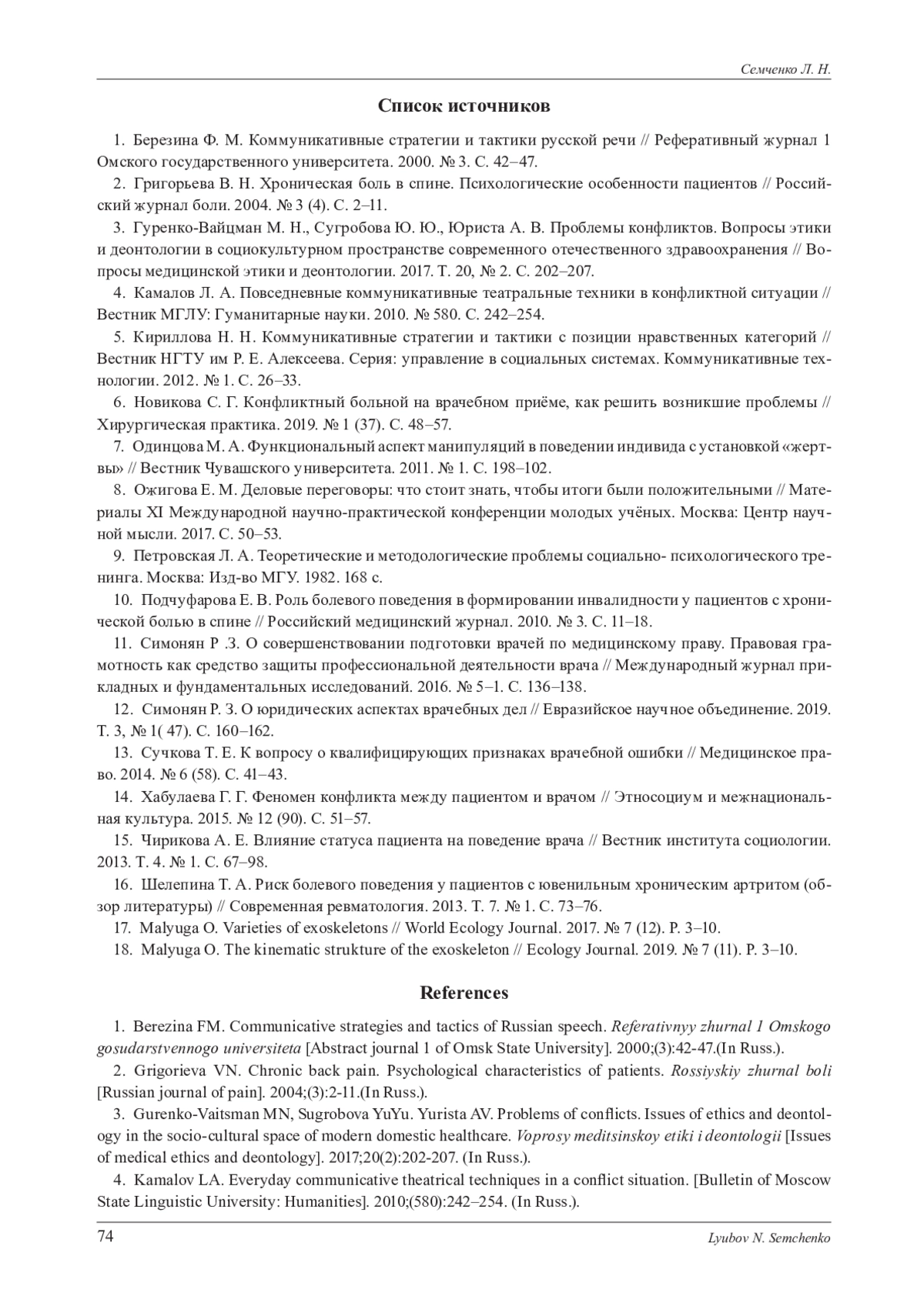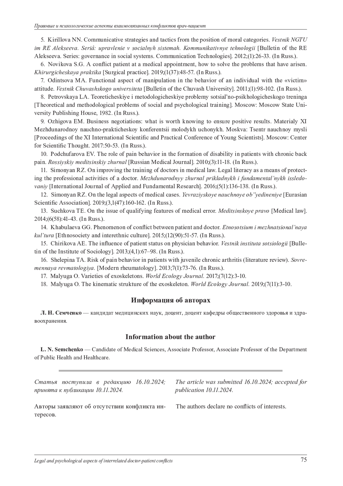 6. Новикова С. Г. Конфликтный больной на врачебном приёме, как решить возникшие проблемы // Хирургическая практика. 2019. № 1 (37). С. 48-57. EDN: EZNVEM