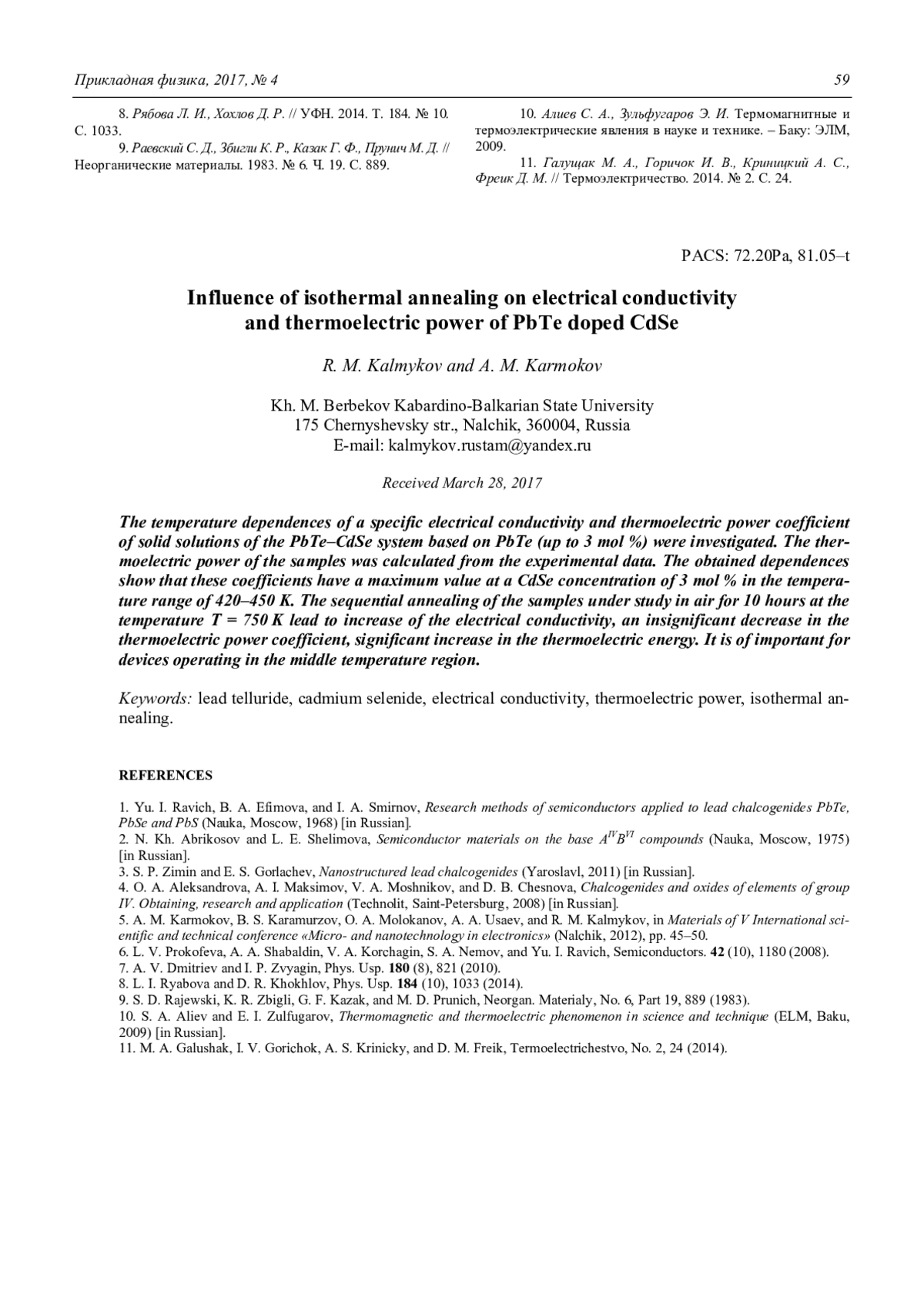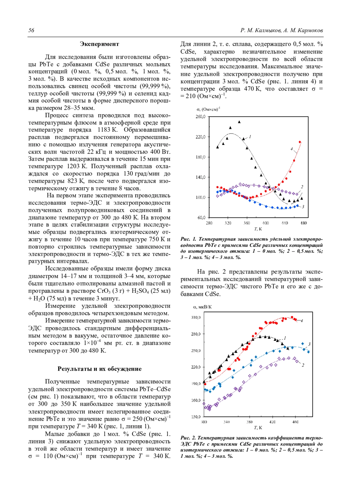 R. M. Kalmykov and A. M. Karmokov Influence of isothermal annealing on electrical conductivity and thermoelectric power of PbTe doped CdSe 55