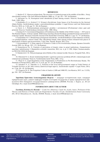 5. Зюбан М. Н. Государственная регламентация занятий проституцией в Российской империи: середина XIX столетия - 1917 г. // Ученые записки. Электронный научный журнал Курского государственного университета. - 2008. - № 2. - С. 74-77.