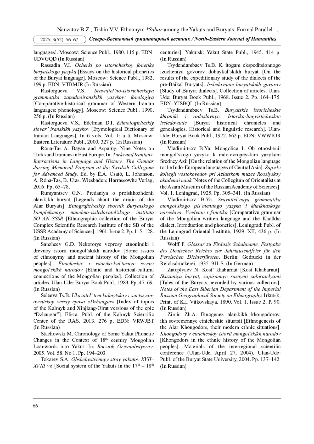 55. Stachowski M. Chronology of Some Yakut Phonetic Changes in the Context of 18th century Mongolian Loanwords into Yakut. In: Rocznik Orientalistyczny. 2005. Vol. 58. No 1. Pp. 194-203.