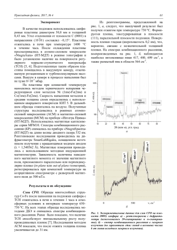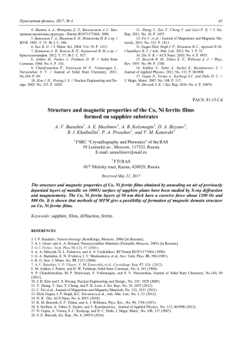 Буташин А. В., Муслимов А. Э., Колымагин А. Б., Бизяев Д. А., Хайбулин Р. И., Просеков П. А., Каневский В. М. Структура и магнитные свойства наноразмерных пленок ферритов кобальта и никеля на сапфировых подложках 60