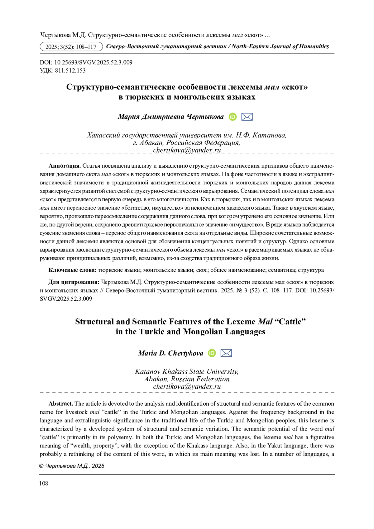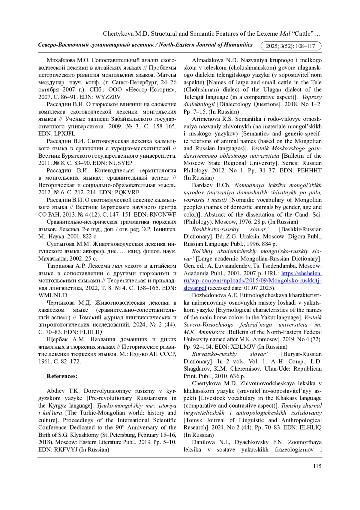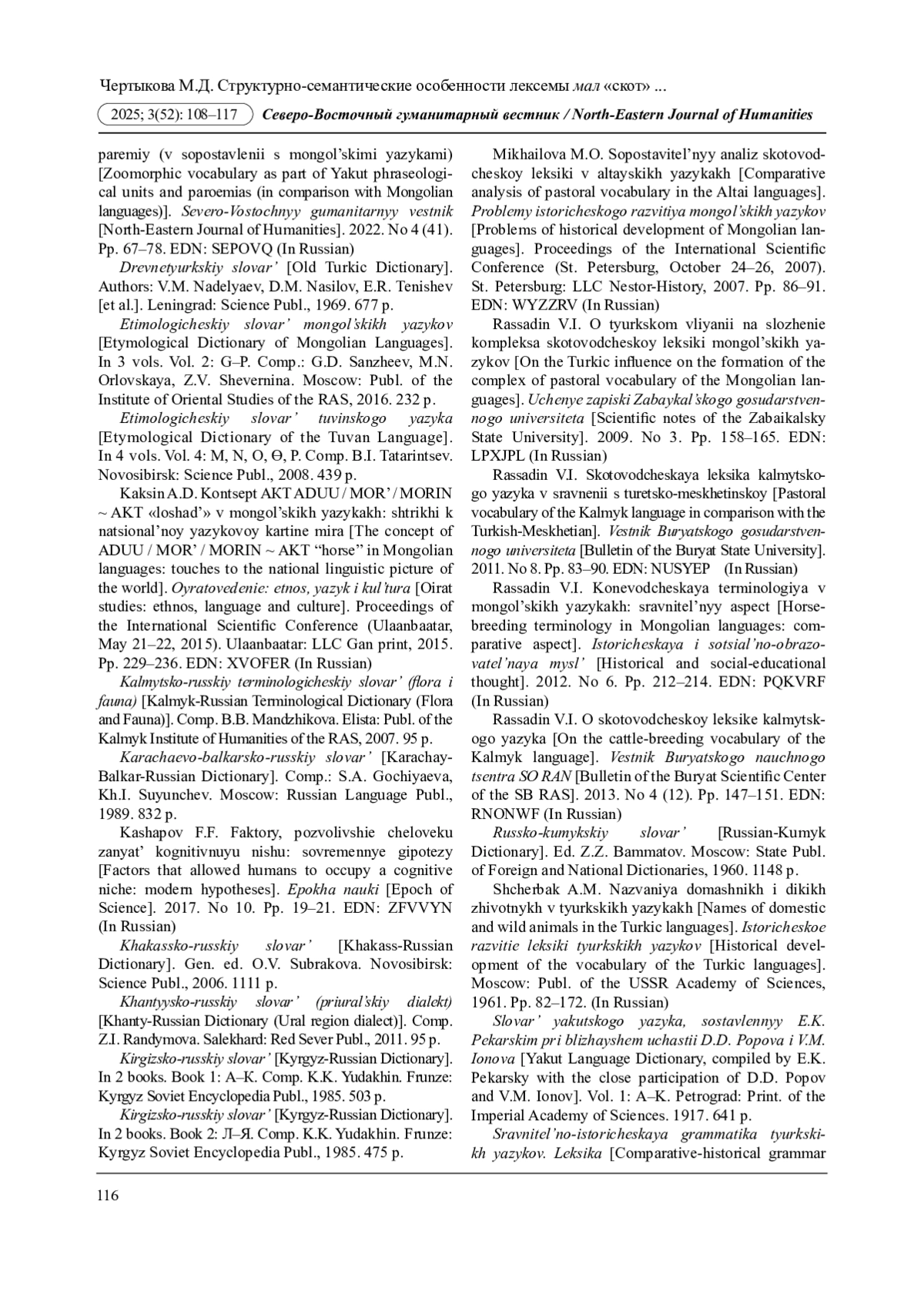 34. Чертыкова М.Д. Животноводческая лексика в хакасском языке (сравнительно-сопоставительный аспект) // Томский журнал лингвистических и антропологических исследований. 2024. № 2 (44). С. 70-83. EDN: ELHLIQ