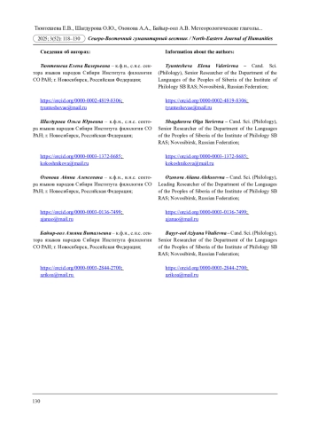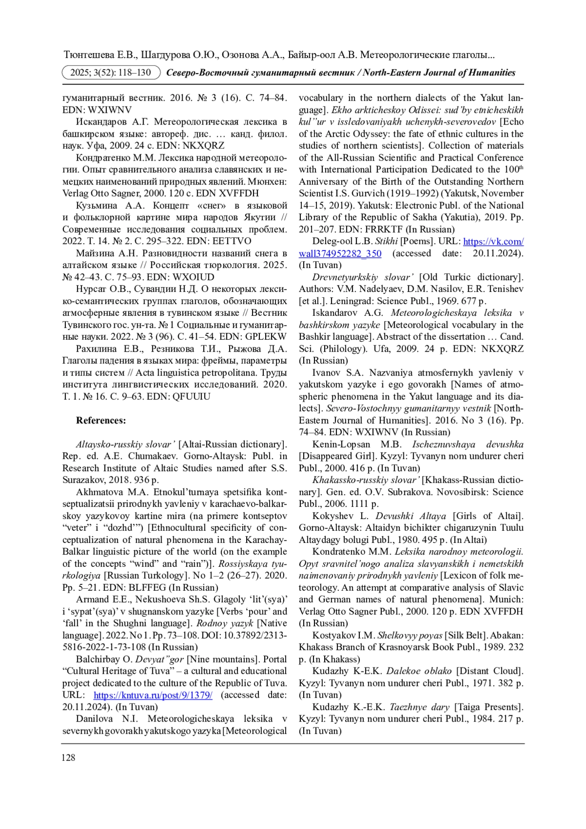 32. Майзина А.Н. Разновидности названий снега в алтайском языке // Российская тюркология. 2025. № 42-43. С. 75-93. EDN: WXOIUD