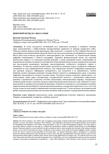 В статье исследуется неочевидный путь вовлечения молодежи в семейную тематику через взаимодействие с нейросетевыми интерактивными сервисами на примере конкретного кейса. Объектом анализа является мини-приложение «Вау, родители!», созданное на базе Telegram Институтом демографического развития Нижегородской области как часть региональных демографических инициатив. Метод кейс-стади позволил рассмотреть мини-приложение как единичный, но показательный пример цифровой коммуникации в области демографии. Применен функциональный анализ для описания архитектуры сервиса и его визуально-игровых решений, а также аудиторный анализ, опирающийся на поведенческие метрики и активность пользователей. Качественный контент-анализ медиаполя использован при рассмотрении выдающихся примеров, демонстрирующих особенности восприятия сервиса в медиасреде. В качестве концептуальной рамки используется авторская модель восприятия сообщения, основанная на идее информационной ценности. Для определения ценности информации предлагаются три критерия: редкость информации, релевантность для получателя и ее применимость. Особое внимание уделено примерам мимикрии государственного контента в платформенную среду и риторику цифровой повседневности, близкую молодым людям. Результаты анализа позволяют предположить, что использование новых форм популяризации государственной повестки с применением нейросетевых решений и иронической стилистики способно преодолевать коммуникативные барьеры, инициировать эмоциональный отклик и запускать процессы переосмысления родительства как темы, значимой, но часто вытесненной из приоритетов молодежной аудитории. Отмечается возможность использования подобных сервисов в качестве своеобразного окна входа в коммуникацию с государством и вероятность того, что в этом случае создается позитивный и управляемый пользовательский опыт. Статья заполняет исследовательский пробел, предлагая аргументацию для изучения подобных кейсов в рамках государственной коммуникации.