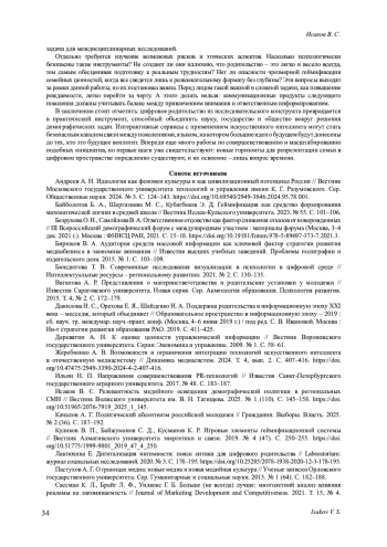 1. Андреев А. Н. Идеология как феномен культуры и как цивилизационный потенциал России // Вестник Московского государственного университета технологий и управления имени К. Г. Разумовского. Сер. Общественные науки. 2024. № 3. С. 124-143. DOI: 10.69540/2949-3846.2024.95.78.001
