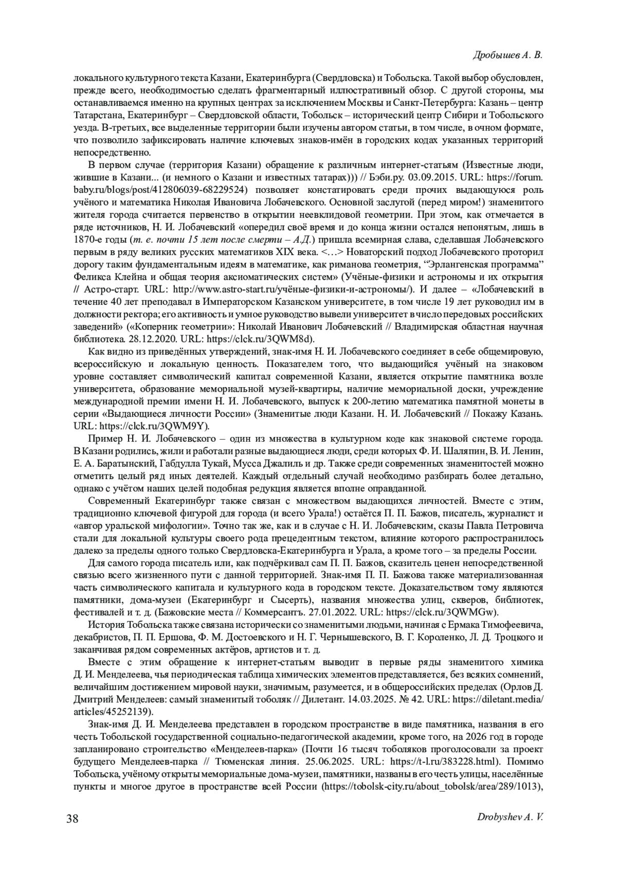 6. Дробышев А. В. Нравственность как поэтическая ответственность высшего порядка: опыт философско-культурологического эссе // Научные школы. Молодежь в науке и культуре XXI века: материалы XXII Международного научно-творческого форума, Челябинск, 14-15 ноября 2023 года. Челябинск: Челябинский государственный институт культуры, 2023. С. 56-61. EDN: DUIKHL