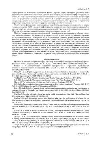 3. Bunea O. I. et al. Digital Engagement and Its Impact on Museum Visitation: An Analysis of Social Media and Online Presence // Economic Computation & Economic Cybernetics Studies & Research. 2024. Т. 58, № 4. P. 91-108. DOI: 10.24818/18423264/58.4.24.06 EDN: SUOPUY