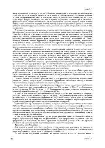 4. Бережная М. А., Корконосенко С. Г. Субъективное измерение профессиональной культуры журналиста // Гуманитарный вектор. 2024. Т. 19, № 3. С. 9-19. DOI: 10.21209/1996-7853-2024-19-3-9-19 EDN: APPASO