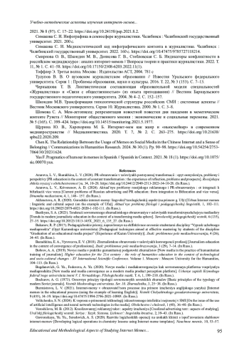 10. Бурмистрова Л. В. Интернет-мемы в образовательном процессе (на примере изучения английского языка) // Вестник Челябинского государственного университета. 2021. № 9 (455). С. 34-39. DOI: 10.47475/1994-2796-2021-10905