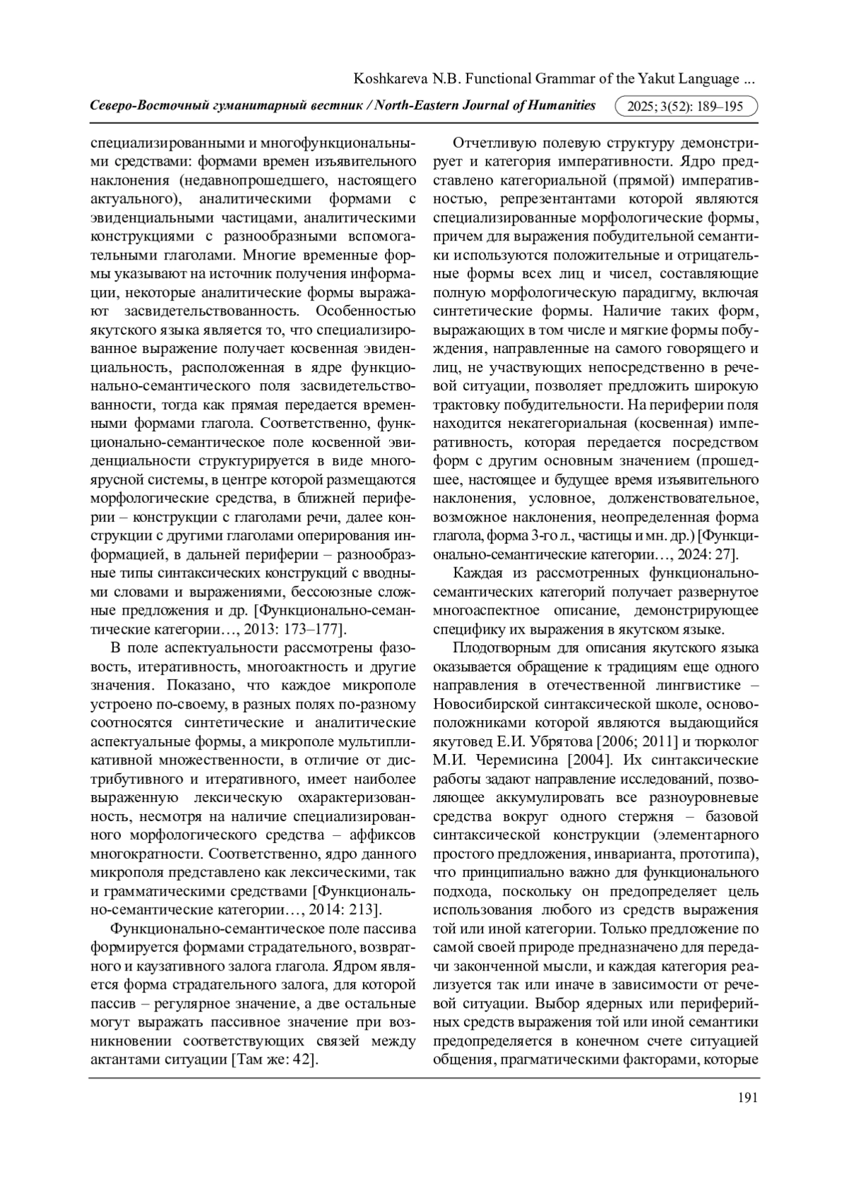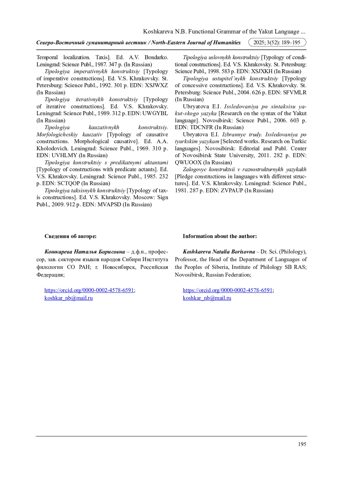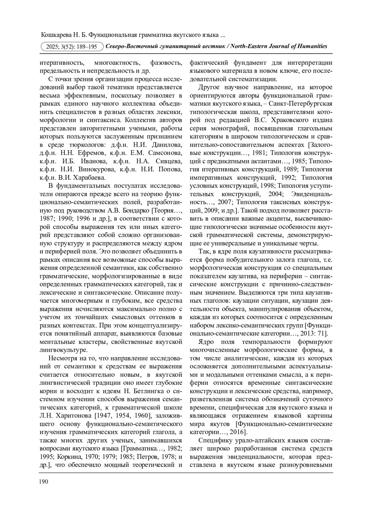 21. Функционально-семантические категории в якутском языке: каузативность, эвиденциальность, итеративность / Н.И. Данилова, Н.Н. Ефремов, Е.М. Самсонова. Новосибирск: Наука, 2013. 240 с. EDN: RLEZCZ