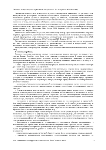 25. Попова А. А. Речевая агрессия студенческой молодежи: репрезентативные функции в контексте стереотипов массового коммуникативного поведения: автореф. дис.... канд. социол. наук. Майкоп, 2021. 29 с. EDN: HDAIMI