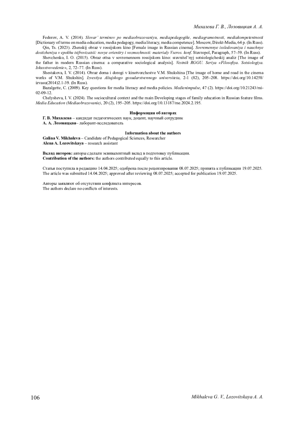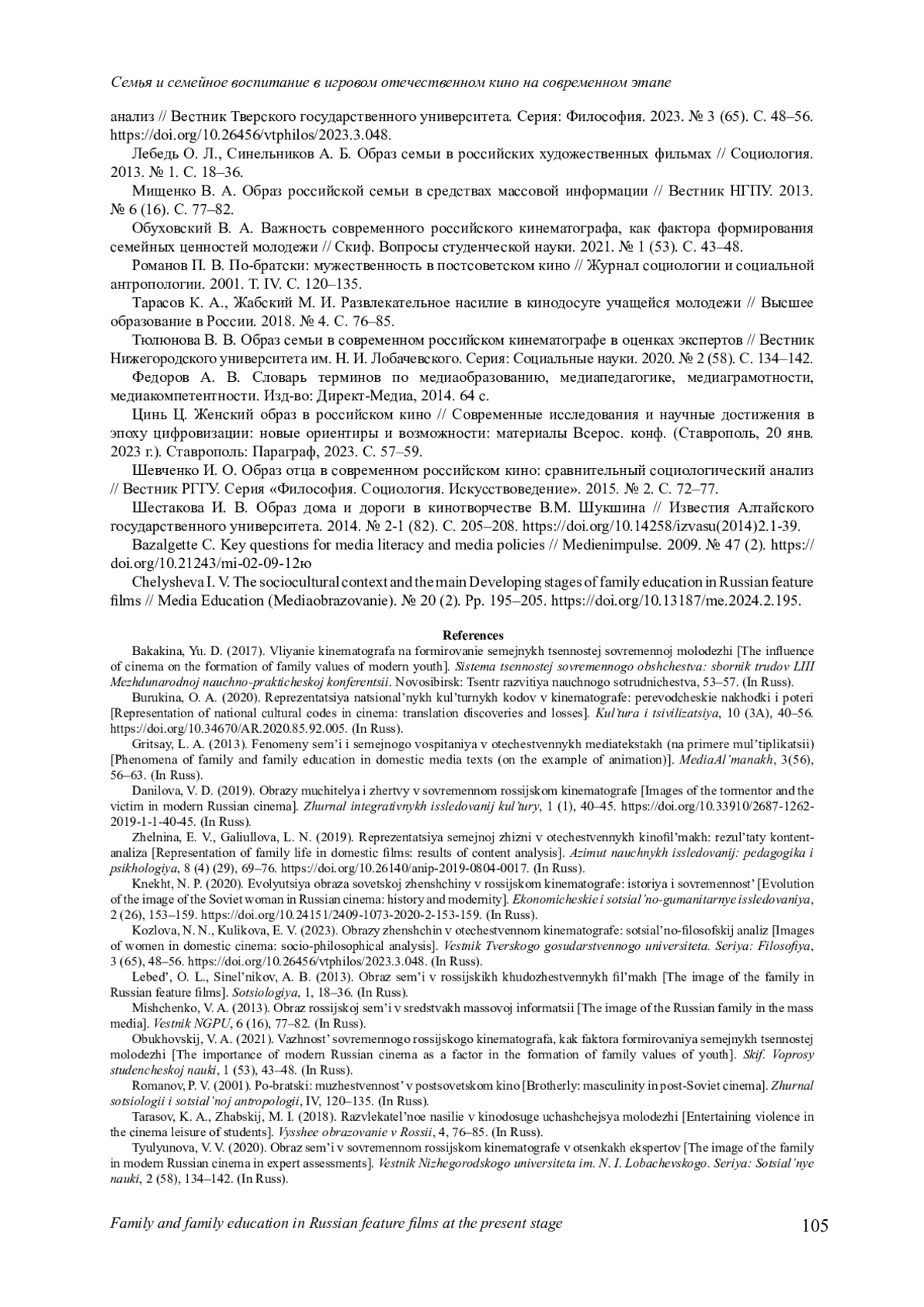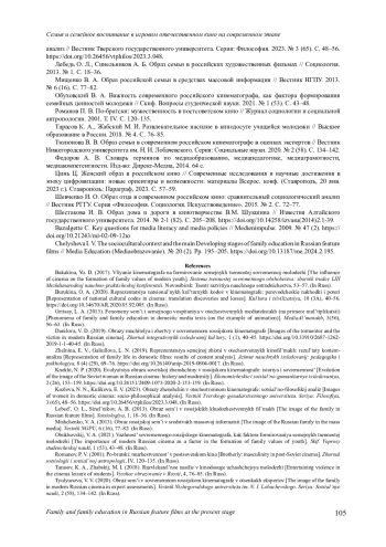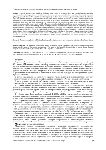 19. Chelysheva I. V. The sociocultural context and the main Developing stages of family education in Russian feature films // Media Education (Mediaobrazovanie). № 20 (2). Pp. 195-205. DOI: 10.13187/me.2024.2.195