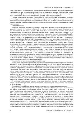 9. Иляхина А. А., Деева И. В. Перспективы применения технологий искусственного интеллекта в журналистике // Вестник науки. 2024. Т. 3, № 1 (70). С. 580-588. EDN: ZJZLYM