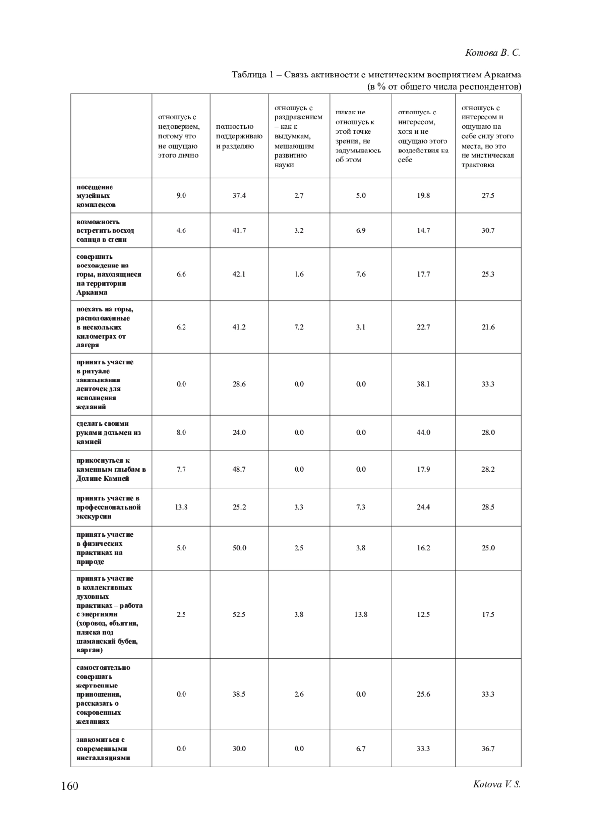 Статья знакомит исследователей со статистическими данными, полученными в ходе опросов посетителей Челябинского государственного историко-археологического музея-заповедника«Аркаим» в 2024 году, и исследует процесс формирования материализованной идентичности посетителей мемориального ландшафта (N=483). Основное внимание уделяется коммуникативным практикам, посредством которых туристы взаимодействуют с пространством, культурными объектами и между собой, конструируя личностные и групповые формы самоопределения и сопричастности. Также изучается взаимосвязь между информационным полем и репрезентацией Аркаима как «места силы», в том числе проблема информационной депривации. В статье рассматриваются четыре тематических блока вопросов, которые задавались респондентам в различном порядке, чтобы сохранить естественность диалога: блок общих сведений о респонденте, включающий социально-демографические характеристики; мотивационный блок, направленный на выявление причин поездки на Аркаим; информационно-эпистемологический блок, исследующий источники информации о Аркаиме и позицию туристов относительно двух основных способов понимания места - научного и духовно-мистического; а также праксео-идентификационный блок, посвящённый практикам освоения территории с учётом сформированной эпистемологической идентичности. Используя данные комплексных опросов, выявлены ключевые мотивации, включая духовные искания, исследование исторического наследия и социальное производство общих смыслов через ритуалы и коллективные действия. Материализованная идентичность проявляется в телесных практиках, восприятии ландшафта и символическом использовании объектов. Статья демонстрирует, что освоение Аркаима - это динамичный процесс, в котором личное и коллективное постоянно переплетаются, создавая устойчивую символическую связь с пространством, а также высказано предположение, что информационная депривация поддерживается самими посетителями как условие сохранения ауры места.