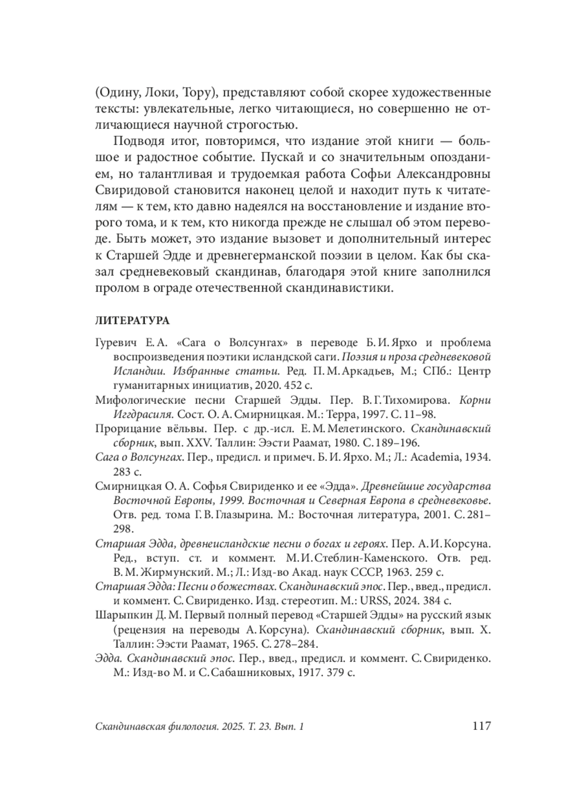 5. Смирницкая О. А. Софья Свириденко и ее “Эдда”. Древнейшие государства Восточной Европы, 1999. Восточная и Северная Европа в средневековье. Отв. ред. тома Г. В. Глазырина. М.: Восточная литература, 2001. С. 281- 298.