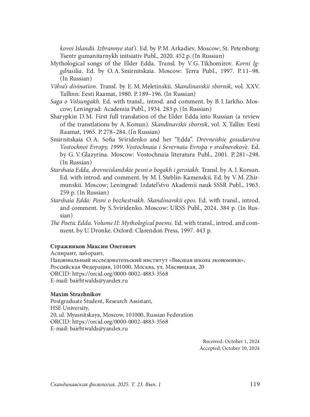 7. Старшая Эдда: Песни о божествах. Скандинавский эпос. Пер., введ., предисл. и коммент. С. Свириденко. Изд. стереотип. М.: URSS, 2024. 384 с.