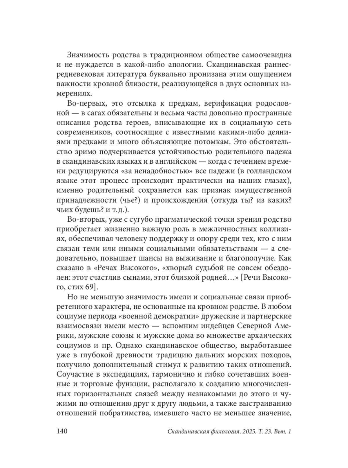 Значимость родства в традиционном обществе самоочевидна и не нуждается в какой-либо апологии. Скандинавская раннесредневековая литература буквально пронизана этим ощущением важности кровной близости, реализующейся в двух основных измерениях