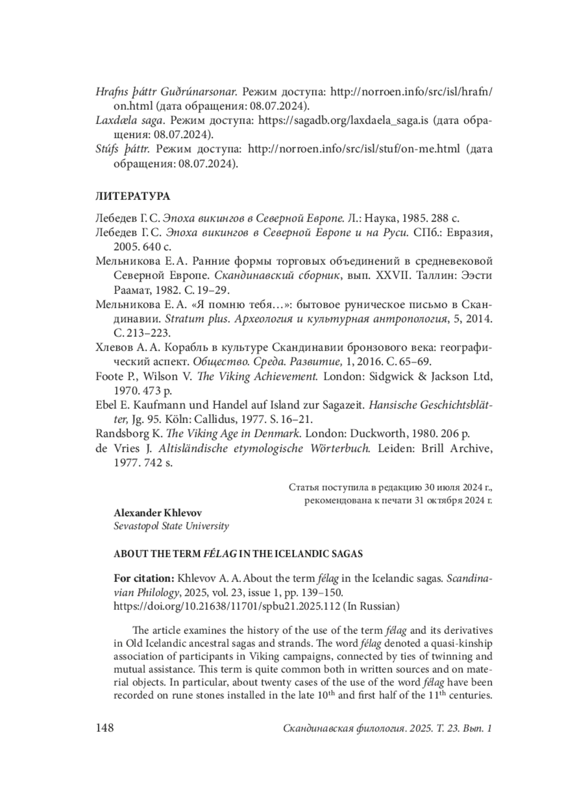 12. Лебедев Г. С. Эпоха викингов в Северной Европе и на Руси. СПб.: Евразия, 2005. 640 с. EDN: QPBEFN