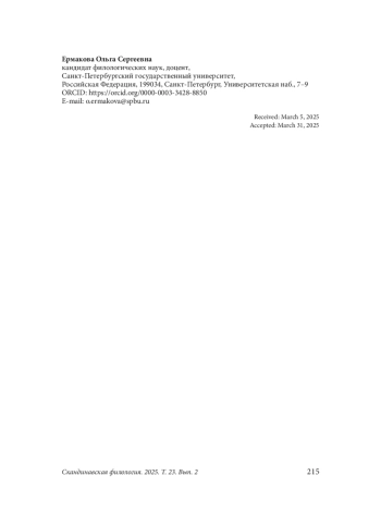 This paper examines the representation of the “other” culture in 19 th-century travelogues, using the examples of Robert Watt’s Traveller’s account Letters from Russia (1867) and Bayard Taylor’s Northern Travel: Summer and Winter Pictures of Sweden, Denmark and Lapland (1857). The traditions of travelling and their reflection in both travelogues are presented, including the popularity of routes to Russia and Northern Europe. The cultural background of the travelogue genre of the mid-19th century is identified, as well as the characteristic features of travelogues, among which is the traveller’s perception of the “other” culture in comparison with his own culture or previously perceived ones. The subject of this study is the individual narrative strategies used by the authors to achieve the goal of conveying their own perception of the “other” world to the reader. A comparative analysis of the narrative structure and dialogicality of the authors’ narrative is made, including the representation of the “other” culture through the traditional documentary structure of travelogues; the static and dynamic nature of the narrative is revealed, the intention is the pinnacle of the journey. The consideration of the “other” culture analyses stereotypes specific to the regions of the narrative, the debunking or confirmation of pre-existing knowledge; the relationship between the cultural and natural features of the regions. The narrators’ immersion in the “other” culture and the narration of their own experiences and feelings during the journey are described. The inevitability of dialogue between “other” and “own” culture, their rapprochement or estrangement is the basis of the travelogue genre