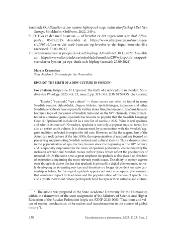 8. Herrlin S. Epadunk är ungas flykt från vardagen - musikgenren blir allt mer populär i Västnyland. Yle, 15.07.2023. Available at: https://svenska.yle.fi/a/710037766 (accessed: 27.09.2024).