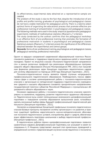 Одним из ведущих направлений современной образовательной политики России становится выявление и поддержка педагогически одаренных детей и талантливой молодежи. Проект по открытию классов «Психолого-педагогической направленности» в рамках различных профилей при реализации образовательных программ среднего общего образования [Письмо Минпросвещения РФ…2021] стал масштабным форматом реализации задач Концепции подготовки педагогических кадров для системы образования на период до 2030 года [Концепция подготовки…2021].