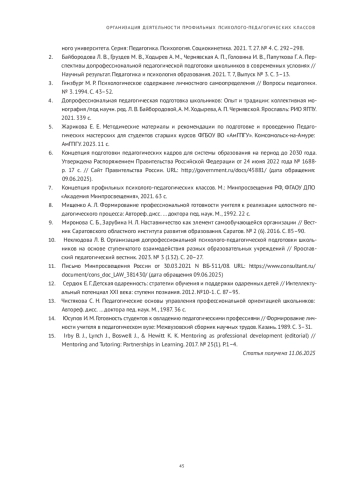 2. Байбородова Л. В., Груздев М. В., Ходырев А. М., Чернявская А. П., Головина И. В., Папуткова Г. А. Перспективы допрофессиональной педагогической подготовки школьников в современных условиях // Научный результат. Педагогика и психология образования. 2021. Т. 7, Выпуск № 3. С. 3-13. EDN: NEXQEU