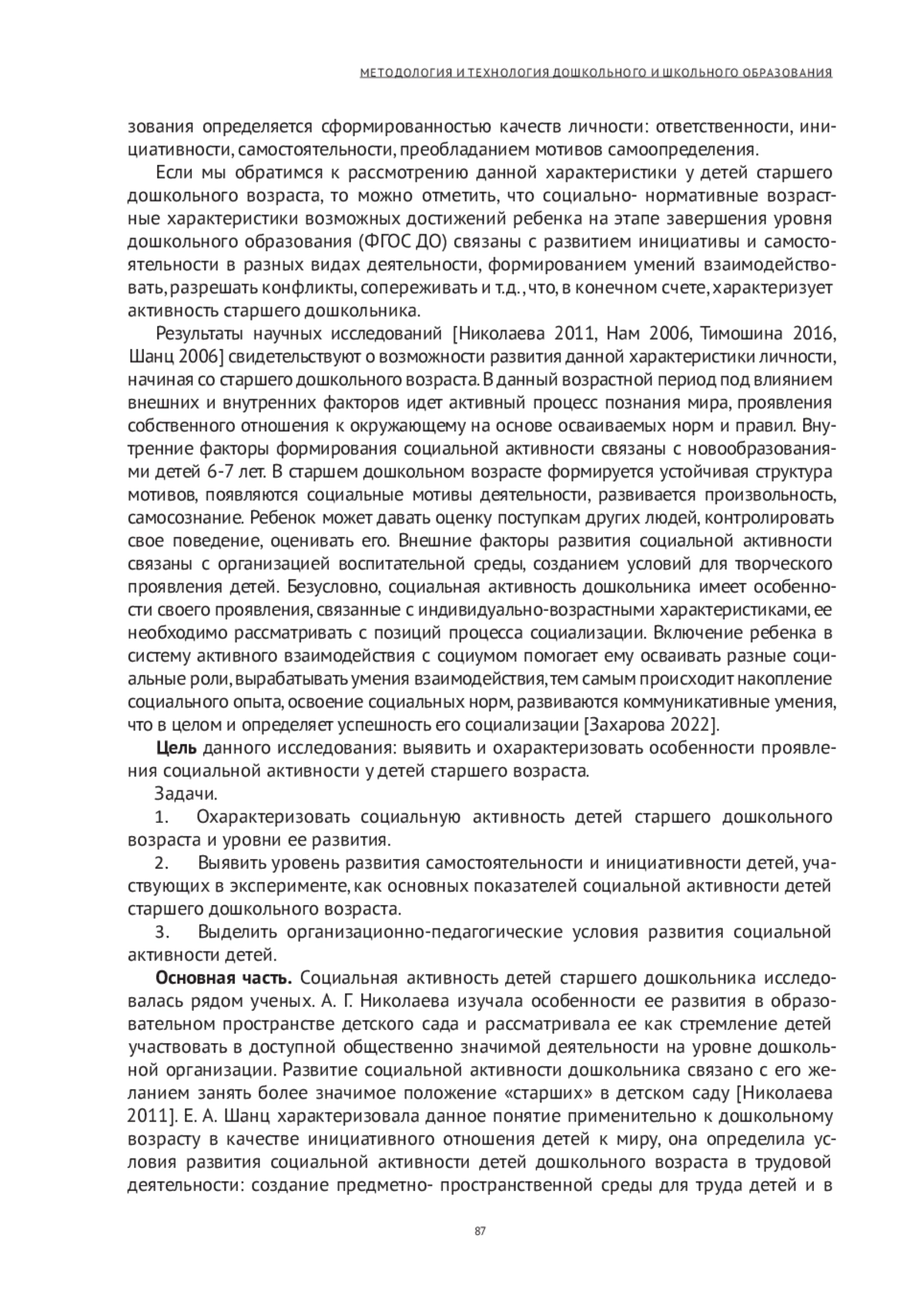 6. Захарова Л. М. Социально-коммуникативное развитие детей дошкольного возраста: учебное пособие. М.: Русайнс, 2022. 154 с. EDN: VFBYAV