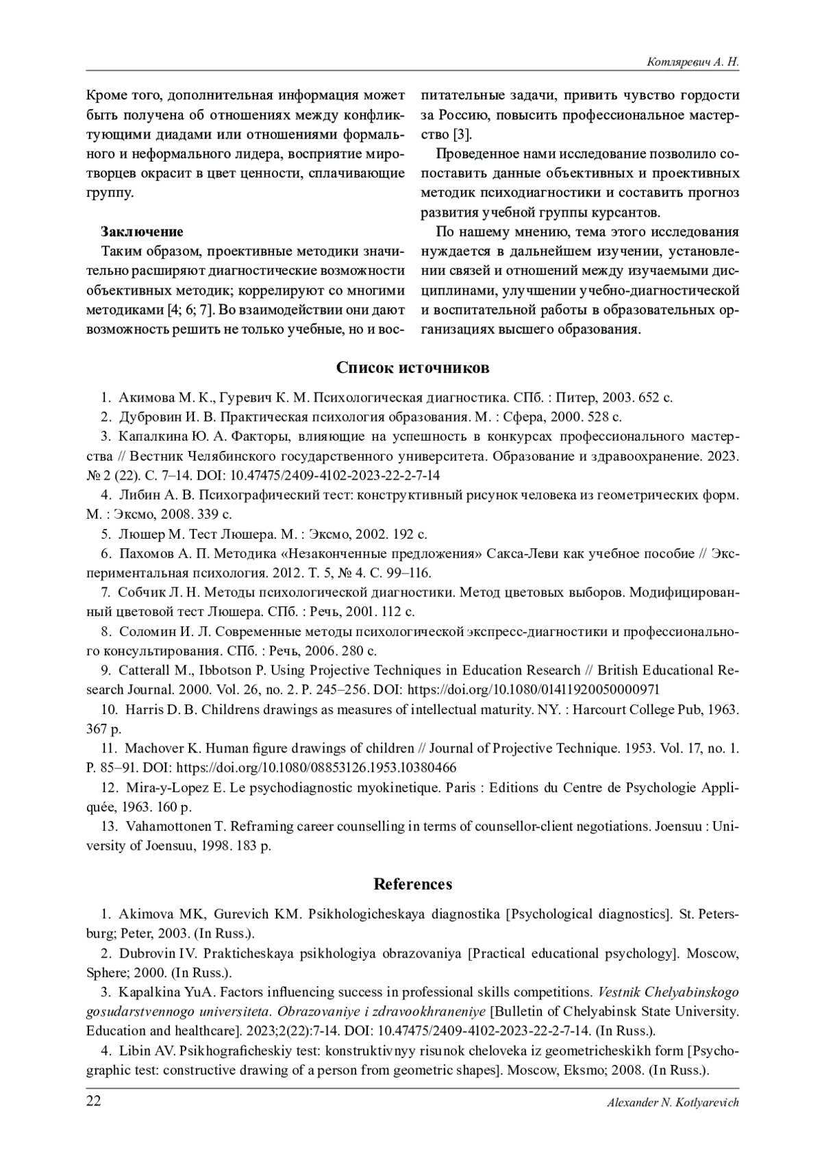 11. Machover K. Human fi gure drawings of children // Journal of Projective Technique. 1953. Vol. 17, no. 1. P. 85-91. DOI: 10.1080/08853126.1953.10380466