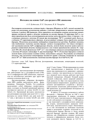 Будтолаев А. К., Хакуашев П. Е., Чинарёва И. В. Фотодиод на основе GaP для среднего ИК-диапазона 47
