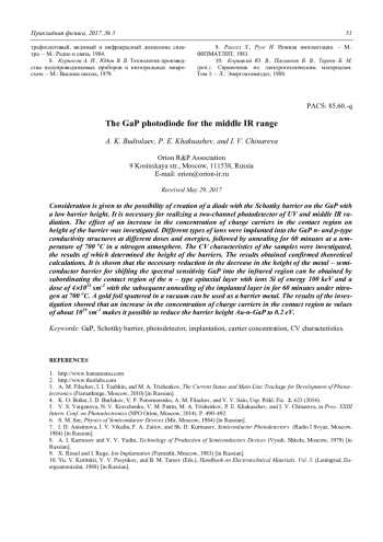 A. K. Budtolaev, P. E. Khakuashev, and I. V. Chinareva The GaP photodiode for the middle IR range 47