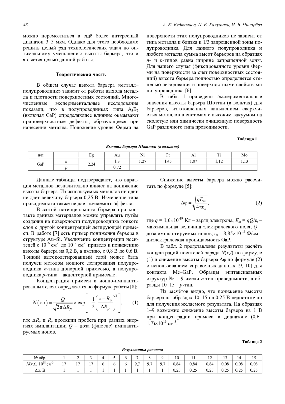 Будтолаев А. К., Хакуашев П. Е., Чинарёва И. В. Влияние разброса глубины p–n-перехода на параметры лавинных фотодиодов на основе InGaAs/InP 36