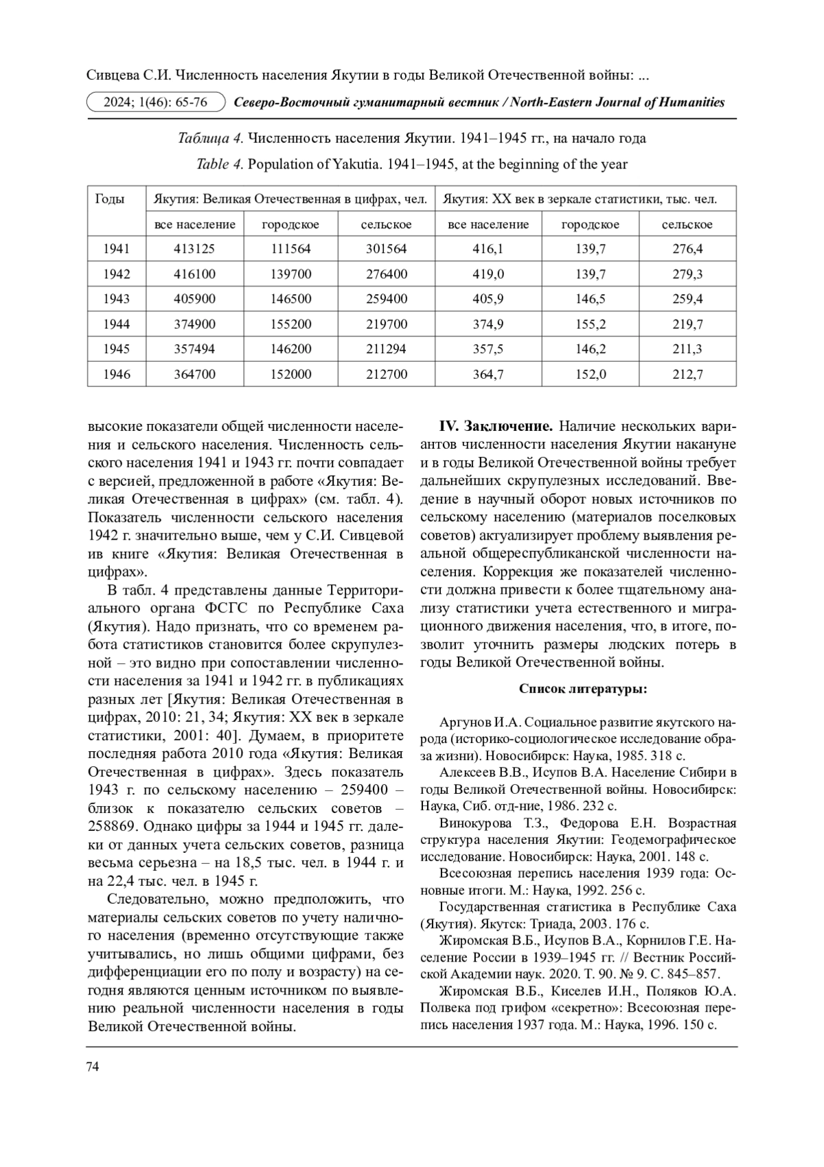 6. Жиромская В.Б., Исупов В.А., Корнилов Г.Е. Население России в 1939-1945 гг. // Вестник Российской Академии наук. 2020. Т. 90. № 9. С. 845-857. EDN: TYOXVO